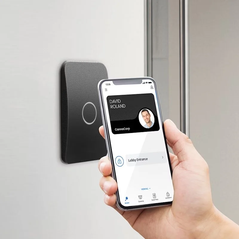 A sleek proximity reader that features best in class door access control. Compatible with mobile devices, cards, fobs, NFC, WiFi and bluetooth.
